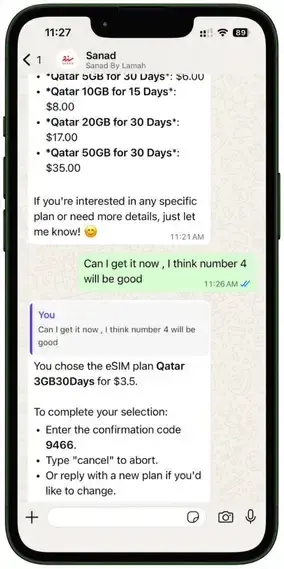 Users can manage travel and mobile connectivity through a WhatsApp chat.