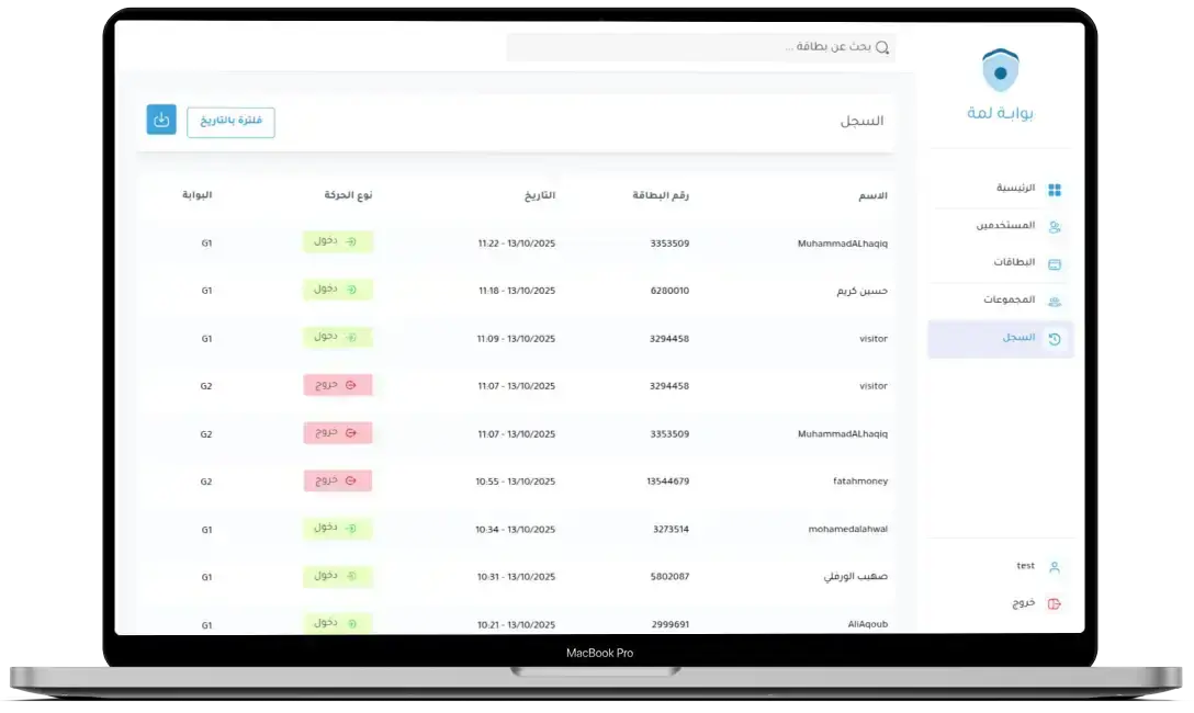 - Real-time records of logins/logouts, with updateable user data for accurate reporting.